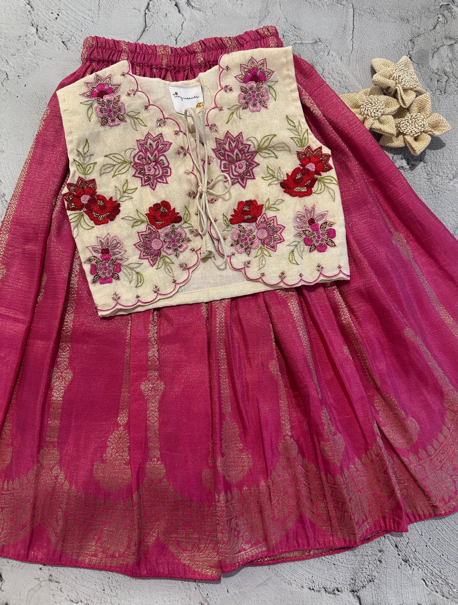 Color: Pink Skirt with Beige Embroidered Blouse
